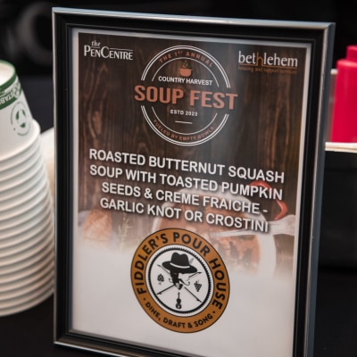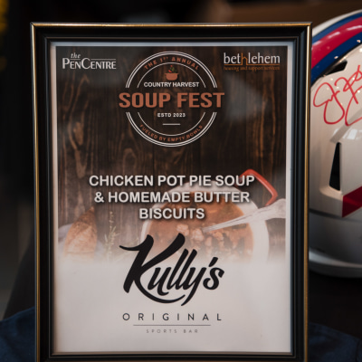 We also want to thank our soup and food vendors for the event - Doc Magilligan's (Served Buffalo Chicken Chowder & Irish Soda Bread), Fiddler's Pour House (Served Roasted Butternut Squash soup with toasted pumpkin seeds and creme fraiche with a Garlic Knot or Crostini), Food Day Canada (Bumper Crop Tomato Soup with Cheese Crisps), Kully's Original Sports Bar (Served Chicken Pot Pie Soup & Homemade Butter Biscuits), PigOut Catering (Served Potato Leek Soup with bacon sippets to add for the meat eaters & Crackers), Zehrs Pen Centre generously provided Ace Bakery buns and assorted beverages for the event.